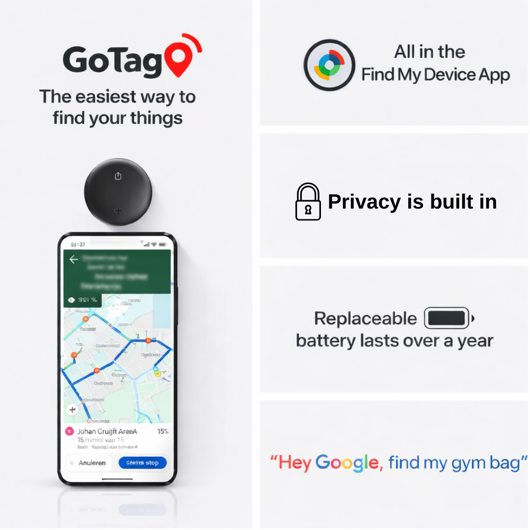 Attach GoTag to your keys, bag, or valuables and track them instantly using your phone.